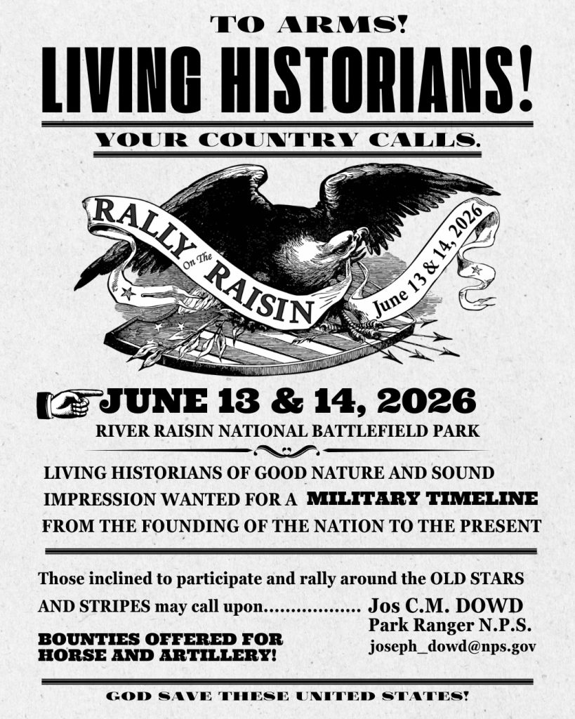 Contact the Park at (734) 243-7136 or joseph_dowd@nps.gov